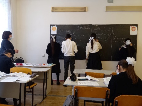 Сабақ барысында жұптық жұмыс жүргізіліп, тест тапсырмалары берілді. Әр оқушының деңгейіне байланысты А, В, С деңгейлік тапсырмалары беріліп, оқушылар тақтаға есептерін жарыса шығарды. Сонымен қатар ҰБТ-ге дайындық мақсатында математикалық сауаттылық және PISA тапсырмалары да қамтылды. Сабақ барысында оқушылар өте белсенді тапсырмаларды орындады. Мұғалім оқушылармен тығыз байланыс орнатып, оқушыларға тақырыпты меңгеруге жан-жақты қолдау көрсете алды.