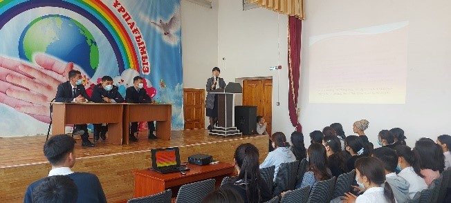 Кездесуде мектептің І санатты, педагог-сарапшы тарих, құқық пәні мұғалімі Н.А.Баданова "Құқық бұзушылықтың алдын - алу басты міндет" атты баяндама оқып, бейнебаян көрсетіп құқықтық тәрбие, құқықтық мәдениет және құқық бұзушылықтың алдын-алу мақсатында ата-аналарға арналған жадынамалармен (ұсақ бұзақылық, кәмелетке толмағандар жасаған бұзақылық, кәмелетке толмағандардың түнгі уақытта ойын-сауық, мекемелерінде жүруі, ерте жүктіліктің алдын алу) таныстырды.
